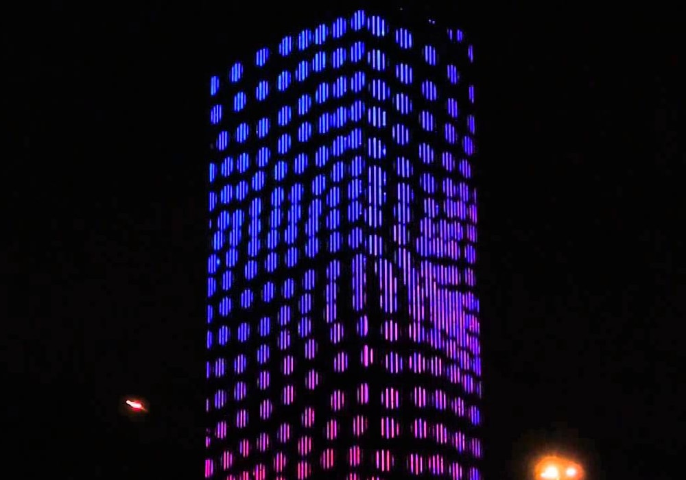 Mamy doświadczenie w integrowaniu elementów świetlnych LED w moduły fasady elementowej. Dzięki temu cała fasada budynku jest fasadą medialną, co umożliwia projekcję obrazów, reklam i innych informacji.